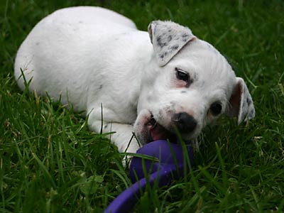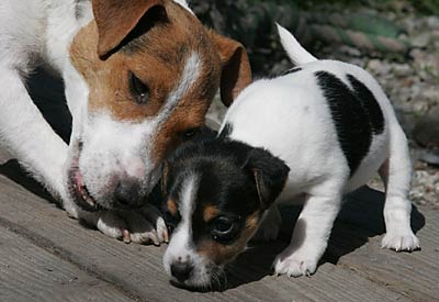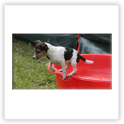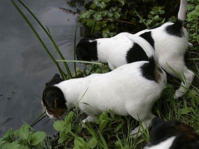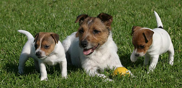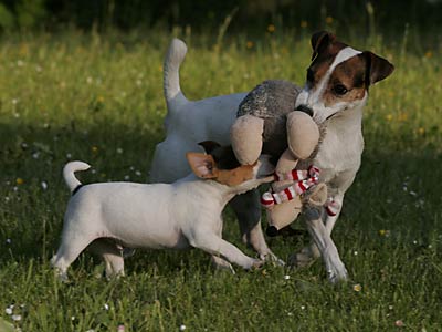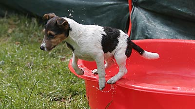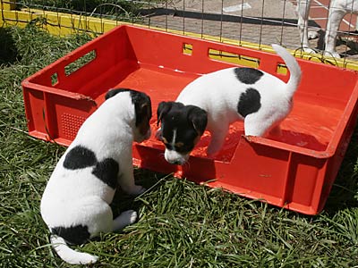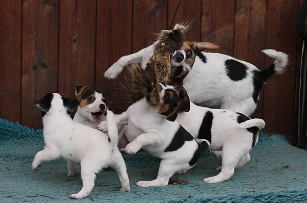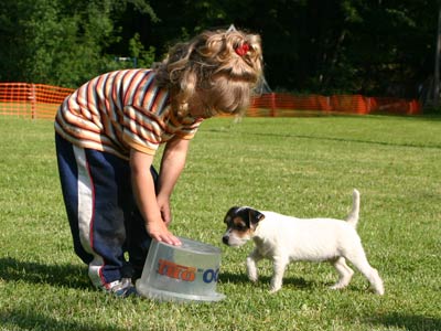 Ab etwa der 6. Woche brauchen die Kleinen dann jede Menge fördernde Beschäftigung. Sie lernen nun jede Menge Menschen kennen, auch Kinder. Spielen mit den anderen Hunden. Lernen Wasser kennen, und viele lustige Spiele. Und beginnen mit kleinen Spaziergängen, bei denen sie lernen dem Menschen zu folgen und auf Ruf oder Pfiff zu kommen.