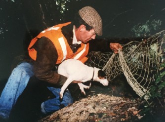 der den Fuchs sprengen soll, um ihn dann mit dem Netz zu fangen