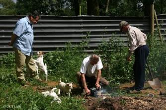Der real Jack Russell wurde zur Fuchsjagd gezüchtet, und zwar zur Arbeit für die Houndmeute. Dies ist überliefert, John Russell war begeisterter Meutejäger, und auch Züchter von Foxhounds. Braucht man dafür einen Terrier, der den Fuchs abwürgt? Nein! Was sollten die Hounds dann jagen, wem die Gesellschaft folgen? Nein, für diese Arbeit war ein kluger Terrier mit überlegter Schärfe gefragt. Einer, der zwar mutig genug ist, einem mindestens ebenbürtigen, zuweilen sogar überlegenen Gegner in dessen dunkle enge Welt zu folgen, aber nicht, um ihn dort zu töten, sondern ihn mit Gekläff und Scheinattacken ans Tageslicht zu befördern, damit die Jagd beginnen oder fortgesetzt werden kann. Gelingt dies nicht, soll er ihn stellen, damit er ausgegraben werden kann. Das Töten des Fuchses war das Privileg der Hounds, oder nach dem Graben der Jäger mit der Kurzwaffe. Ja, natürlich gab es auch den ein oder anderen Terrier, der dem Fuchs den Garaus machte, dann aber in der Regel im richtigen Moment und wohlüberlegt eigene Verletzungen vermeidend. Es war auch keinesweg das unbedingte Zuchtziel. Ein Terrierman führte in der Regel mehrere Terrier unterschiedlicher Arbeitsweisen mit -